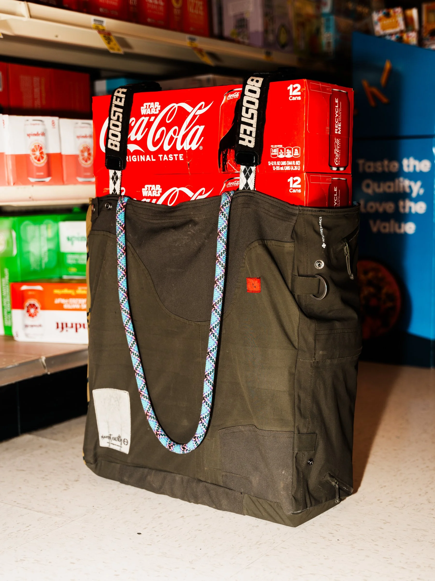 Gear that has been too well loved can often be repurposed. Ski clothing and other outerwear can become a new durable item that is with you year-round. 1 pair of ski bibs can make a tote bag or numerous smaller items.